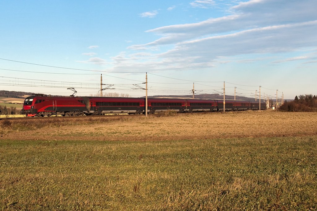 Ein Railjet ist Richtung Westen unterwegs. Die Zugnummer ist mir leider unbekannt, die Aufnahme entstand am 27.11.2011 um 14:50 zwischen Neulengbach und Ollersbach.