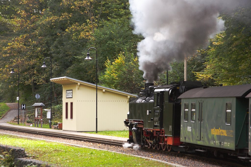 Mit frisch ergänzten Wasservorräten setzt 99 1771 am 07.10.2011 im Bahnhof Dippoldiswalde um und wird gleich ihren Planzug zurück nach Freital-Hainsberg übernehmen.