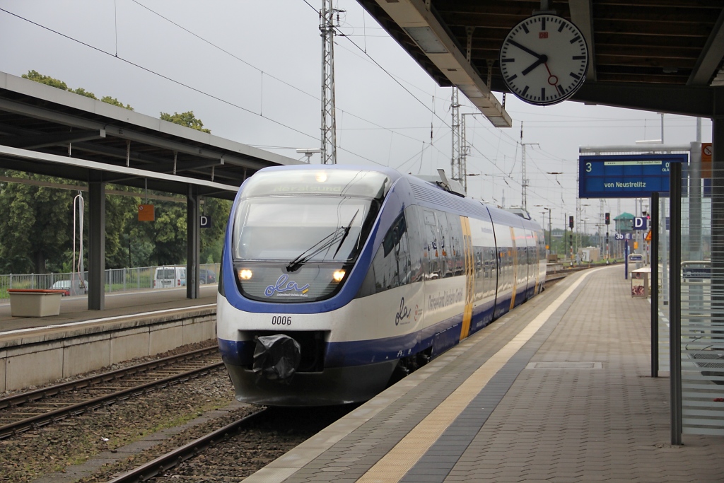 Ankunft des VT0006 (643 113-3) der OLA in Stralsund Hbf. Aufgenommen am 13.08.2011.