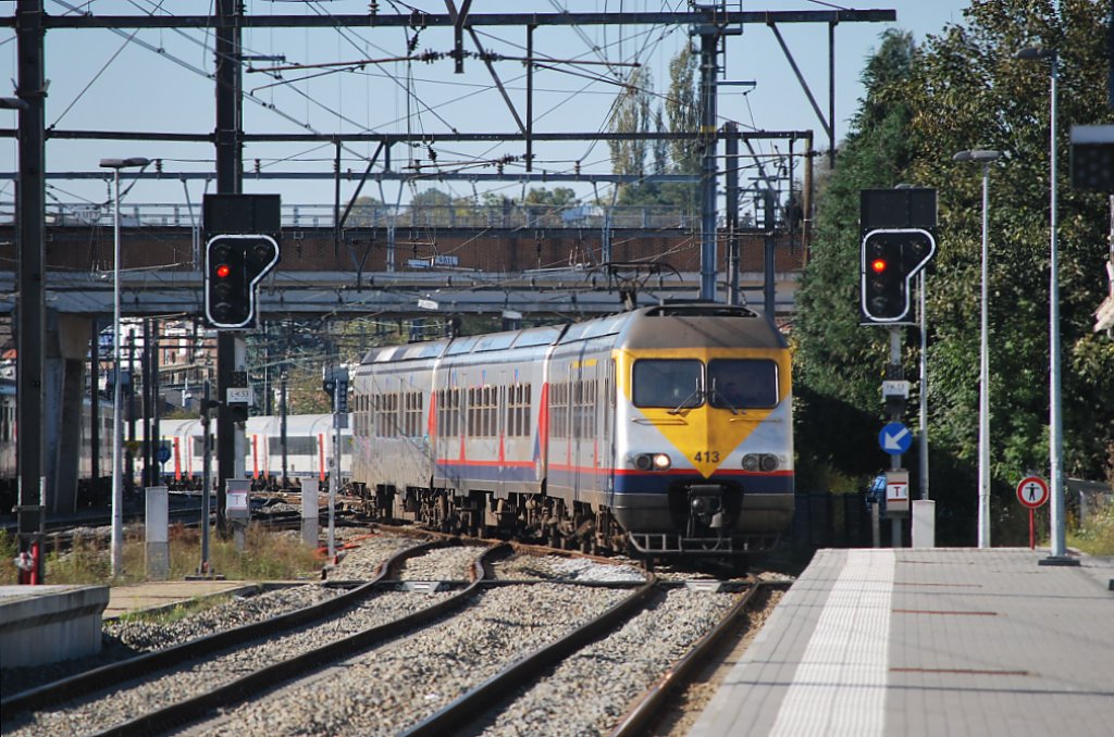 Elektrolok 1353 am BÜ Gemehret (IC-A-Zug Eupen-Oostende) am 15.10.2011.
