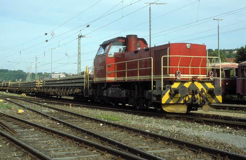 145 023 (Pressnitztalbahn) bringt einen kurzen Flachwagenzug mit Schub von 204 005(Diesellok-nicht auf Bild)durch Dresden Cotta.