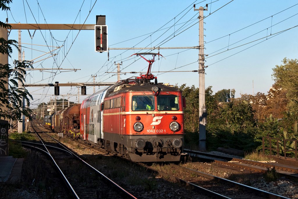 1042 023 fährt mit Sdz D 17635 von Wien FJB nach Mürzzuschlag.