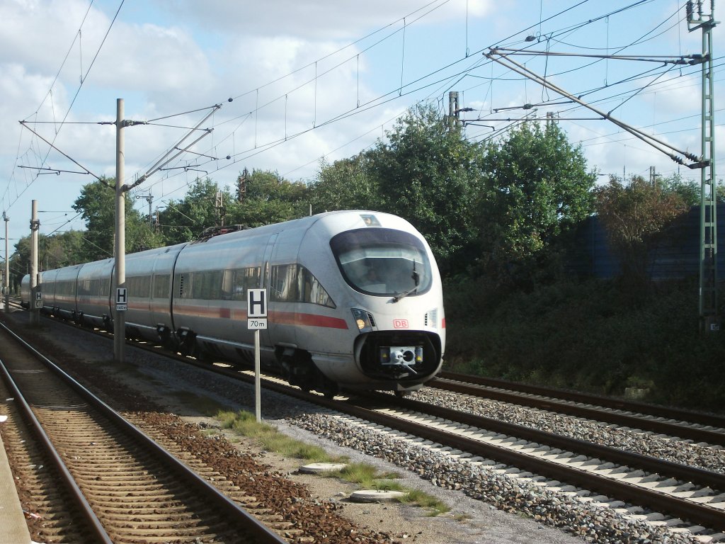Den RE 18355 aus Schwedt(Oder) zog 114 024,am 01.Oktober 2011,in den Bahnhof Angermünde,um danach weiter nach Wünstdorf Waldstadt zufahren.
