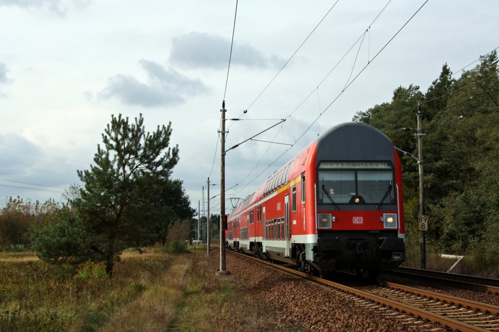 Steuerwagen vorraus ist RE26057 am 19.10.'11 zwischen Schwarzbach und Hosena unterwegs