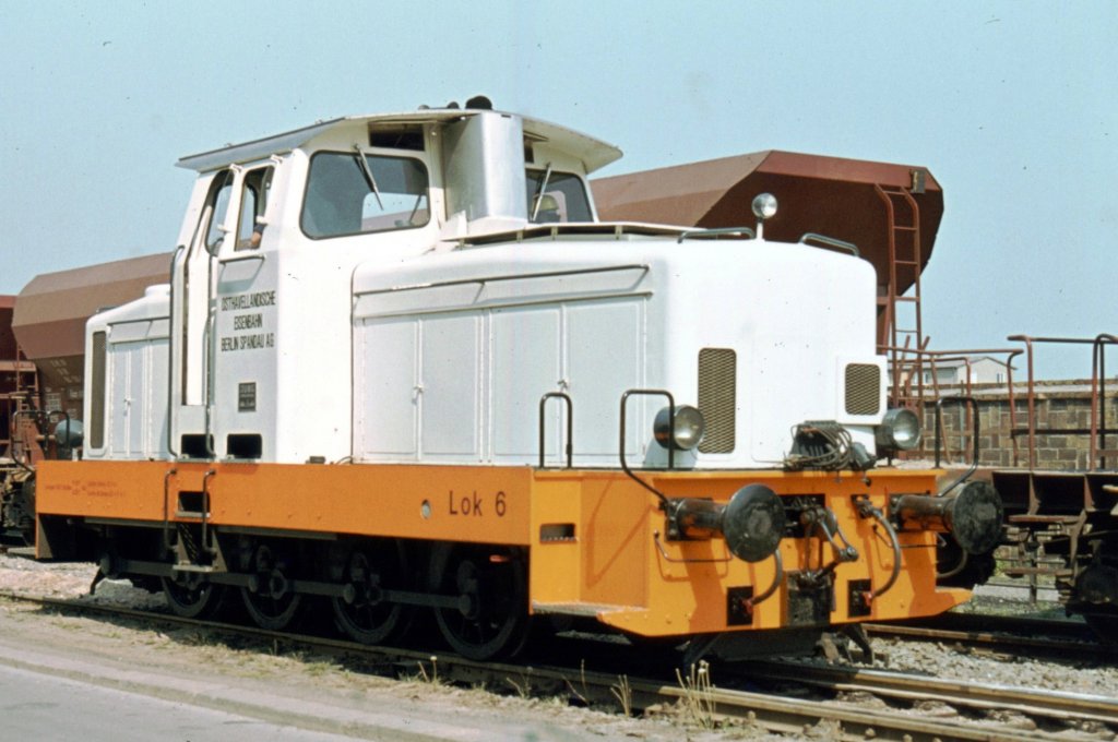 OHE (Osthavelländische Eisenbahn) Lok 6 Berlin-Spandau, Rauchstraße im Mai 1981 - da fährt die heutige HVLE schon lange nicht mehr hin.