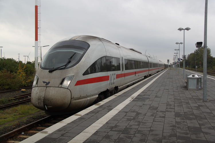 ICE 2803 von Hamburg Hbf nach Puttgarden bei der Einfahrt im Bahnhof Puttgarden,der Planzug EC31 Hamburg-Koebenhavn fiel bis Roedby aus.06.10.2011