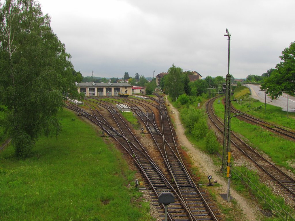 Die Gleisanlagen der Est Freilassing und der Abzweig in Richtung Mühldorf, in Freilassing; 27.05.2011