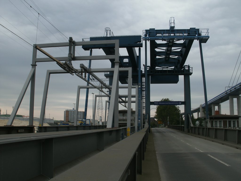 Die Fahrleitungstrennstelle auf der Ziegelgrabenbrücke in Stralsund am 17.September 2011.