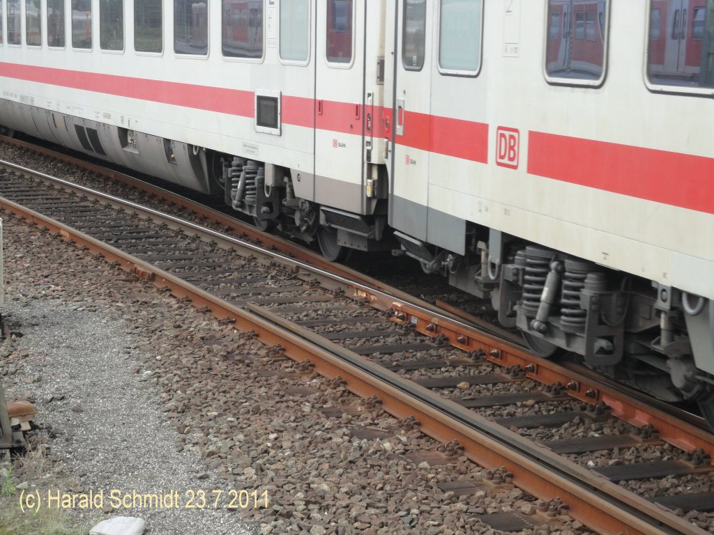IC-Wagen am 23.7.2011 auf einer Weiche bei der Einfahrt in den Bahnhof Hamburg-Altona