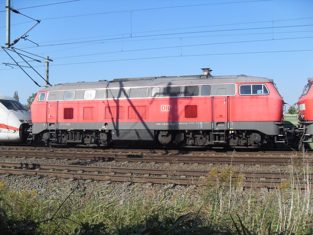 218 836 und 218 832 schleppten am 25.09.2011 ICE 402 035/808 035(Görlitz)und 402 005/808 005 (Zwickau)von Stendal nach Berlin ab.