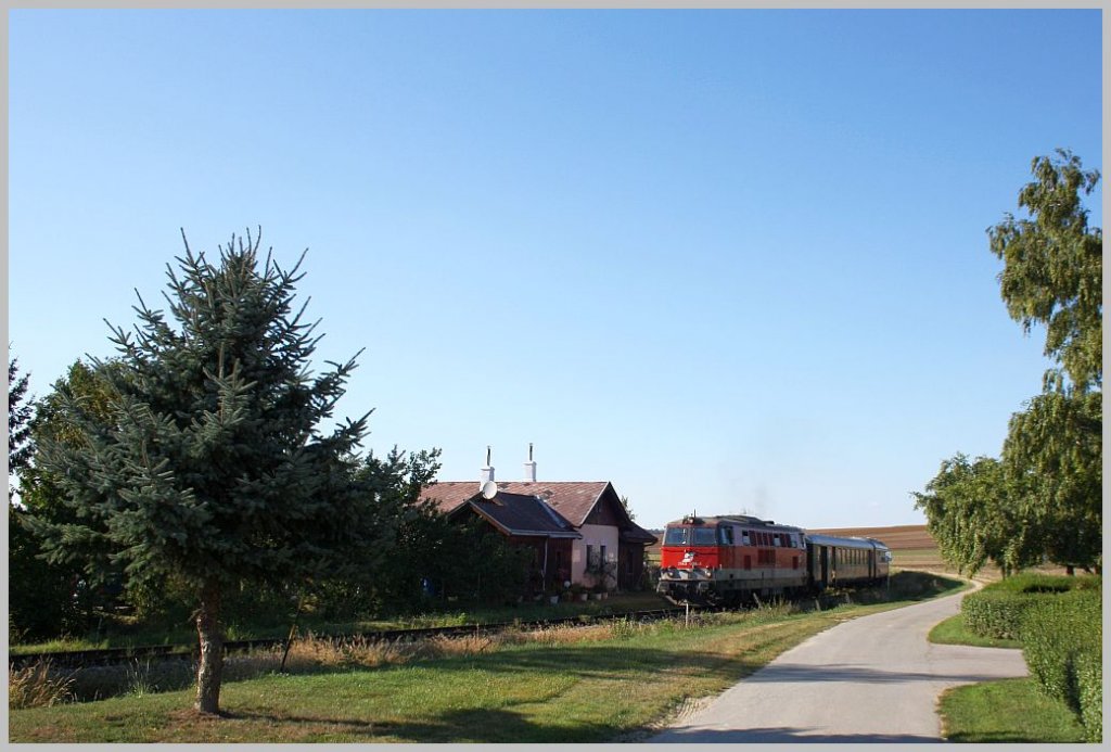 Die 2143 038 mit EZ 3799 bei der Durchfahrt im ehemaligen Bahnhof Naglern-Simonsfeld. 03.09.11