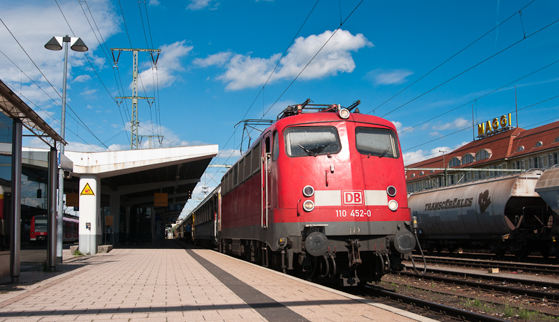 110 452-0 am 16. August 2011 mit dem IC 184 (Zürich HB - Stuttgart Hbf) in Singen(Hohentwiel).