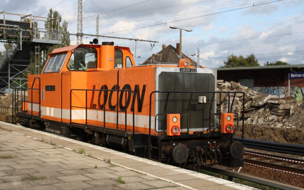 Locons V100 / 213 am 7.9.2011 in Bernau bei Berlin auf dem S-Bahn Gl.2 während der Bauarbeiten am Fernbahnsteig / Aufzug.