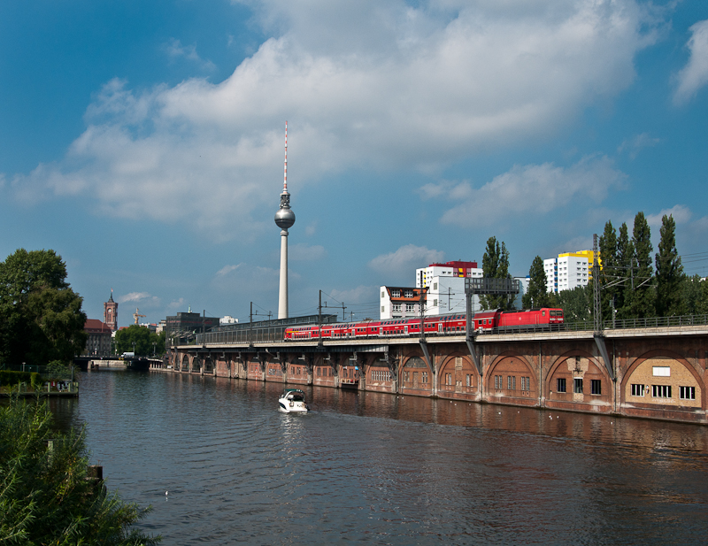 114 032-6 am 25. August 2011 mit dem RE 18115 (Magdeburg - Eisenhüttenstadt) am S-Bahnhof Jannowitzbrücke.