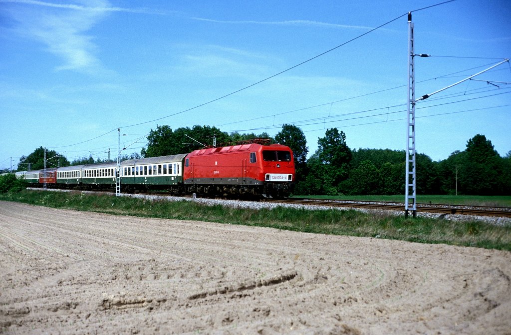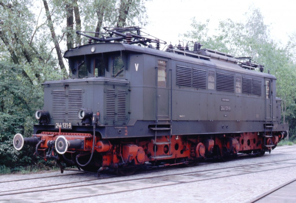 Die Neumarkter Bahnhofs-Kleinlok war auch für die Übergabefahrt nach Beilngries zuständig. Im Mai 1987 wurde sie auf der Rückfahrt im Haltepunkt Sengenthal fotografiert. Das rote Auto biegt von der parallelen Bundesstraße B299 in den Ort ab.