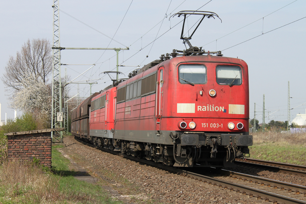 155 261-1 mit einem Res Ganzzug der CD-Cargo in Rathenow in Richtung Stendal unterwegs. 10.04.2012