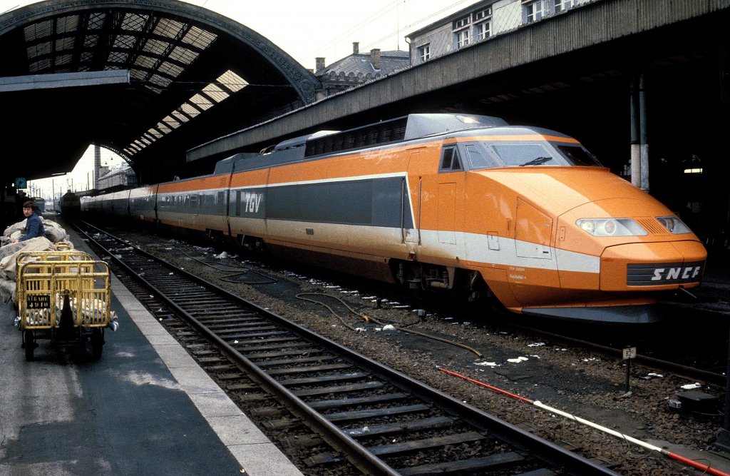SNCF - Triebzug 82573 abgestellt im Bahnhofsareal von Genf am 08.04.2012 .. Standpunkt des Fotografen auf dem Perron..