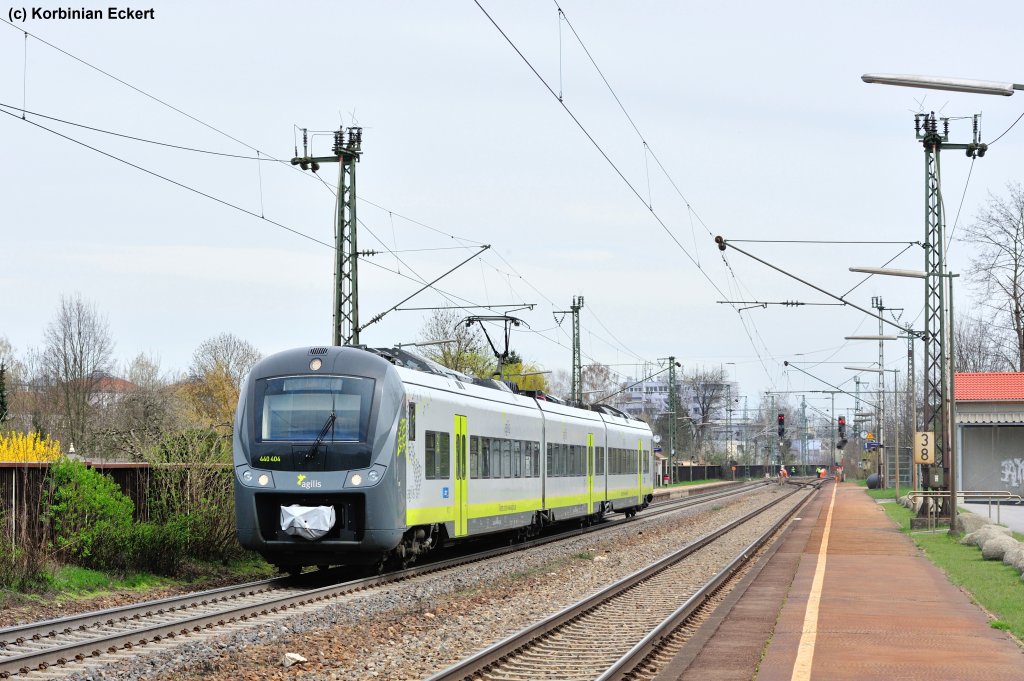 440 404 mit Ag 84416 von Plattling nach Neumarkt (Oberpf) beim Halt in Regensburg-Prüfening, 10.04.2012