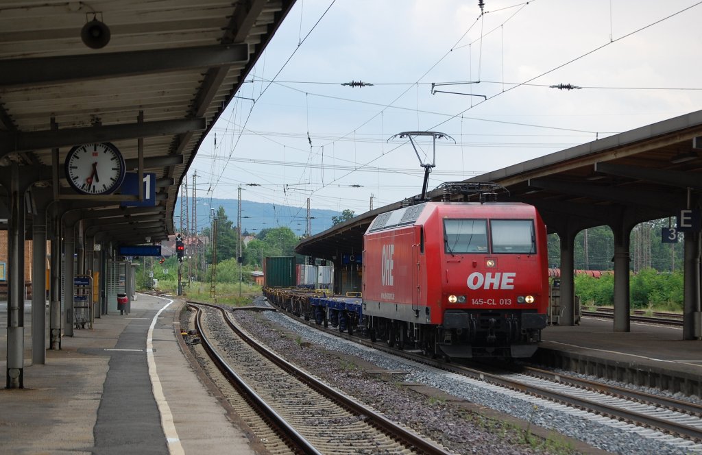 OHE 145-CL 201 mit einem Containerzug am 21.07.2011 durch Kreiensen