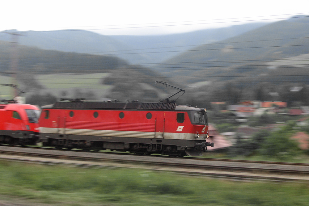 44er-Thementag: Mit OEC 255 nach Maribor durchfährt 1044 121 am 18.03.2010 den Bahnhof Felixdorf.