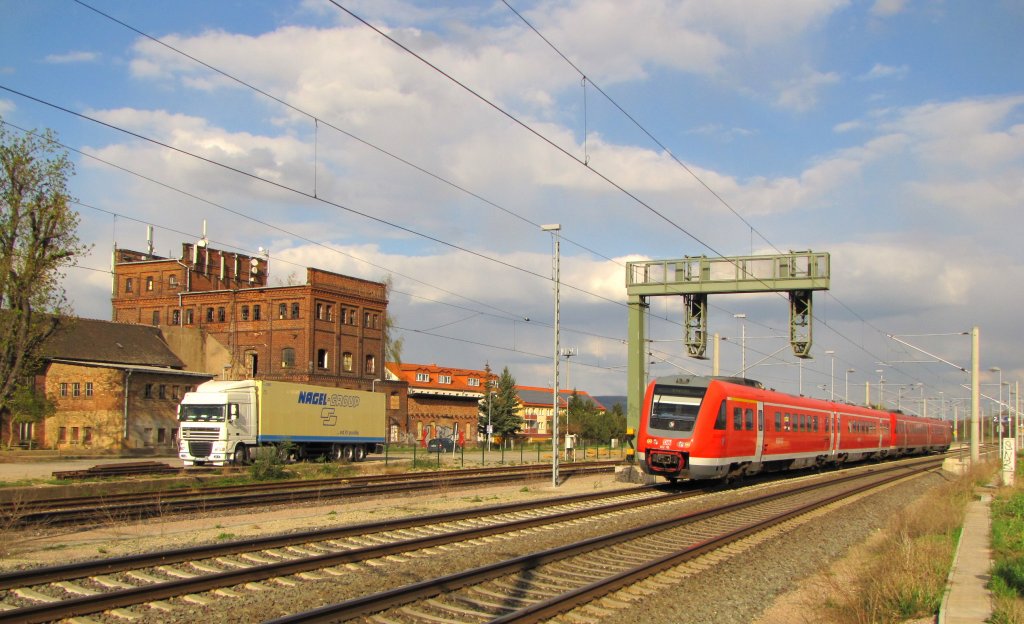 DB 612 176 als RB 16294 von Apolda nach Erfurt Hbf, am 16.04.2012 in Erfurt-Vieselbach.