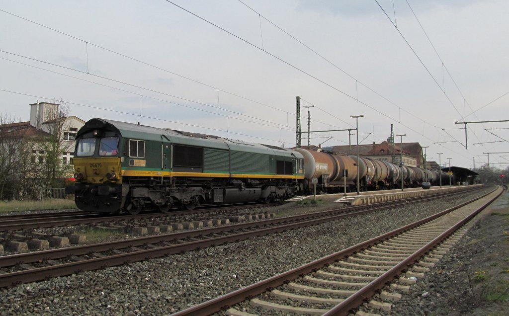 DE 676 von Ascendos zieht am 17. April 2012 einen Kesselwagenzug durch Kronach.