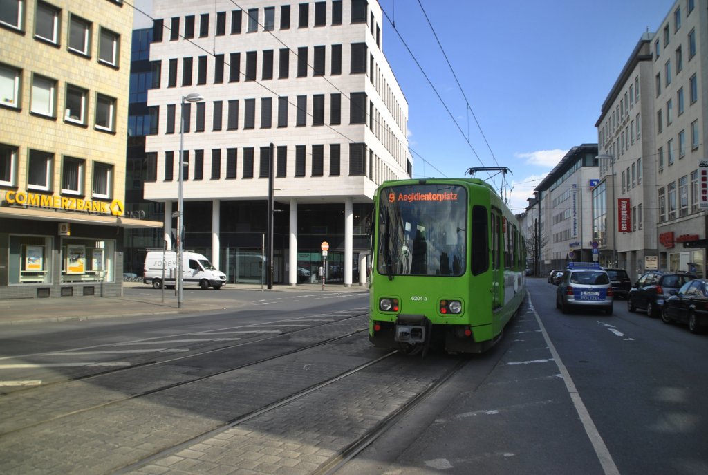 Stadtbahnzug der Linie 9 (Umleiterzug) an der Haltestelle Steintor, am 08.04.2012. In der Bahn saß zufällig mein Arbeitskollege.