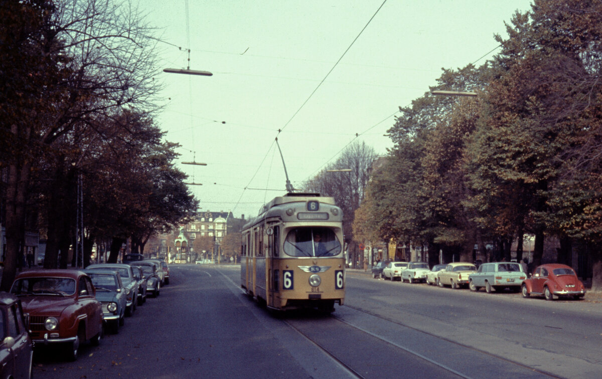 København / Kopenhagen Københavns Sporveje (KS) SL 6 (DÜWAG/Kiepe-GT6 814) Østerbro, Dag Hammarskjölds Allé am 20. Oktober 1968. - Scan eines Diapositivs.