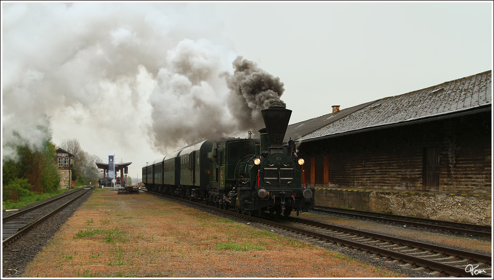 Dampflok 671 der GKB fährt mit dem Sonderzug SPz 8520 von Lieboch nach Wies-Eibiswald. Deutschlandsberg 21.4.2012