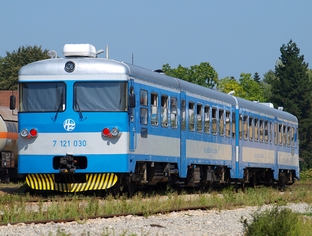 Dieseltriebwagen 7121 030 im Bahnhof Zabok, modernisierte Version mit LEDs und Zugzielanzeige. / 22.08.2011.