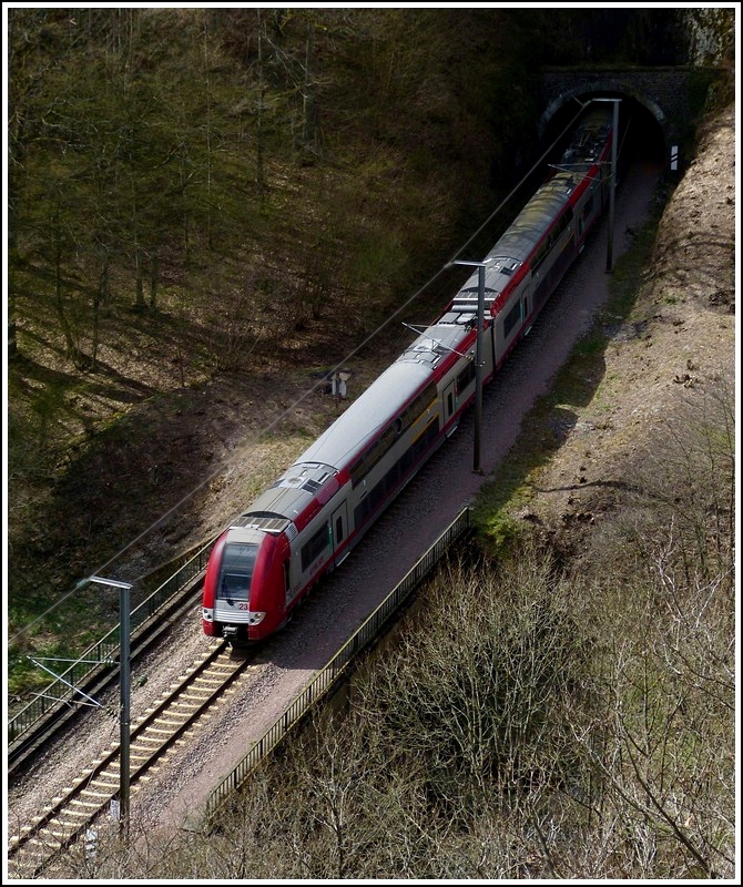 - Tunneldurchblick - Die 3015 passiert mit dem IR 112 Luxembourg - Liers am 09.03.2012 den Tunnel "Kirchberg" in Kautenbach. (Hans)