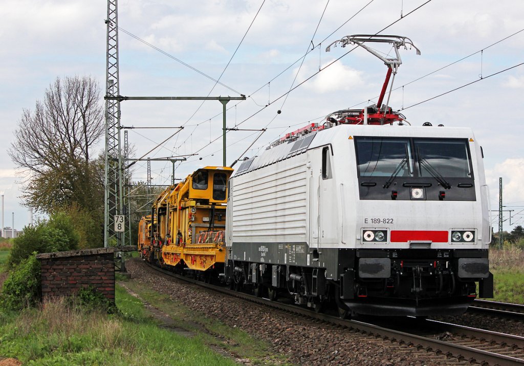 Eine Gleisstopfmaschine stand am 19.04.12 zusammen mit einer Profiliermaschine in Burgkemnitz abgestellt. Beide Maschinen ertüchtigten in den Wochen zuvor die Bahnstrecke Burgkemnitz - Zschornewitz.