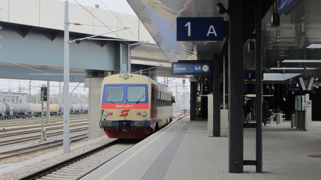 Der 5047 027 verkehrte am 7.4.2012 als R 2568 von Wien Südbahnhof (Ostbahn) nach Raasdorf und konnte dabei von mir in Wien Stadlau fotografiert werden.