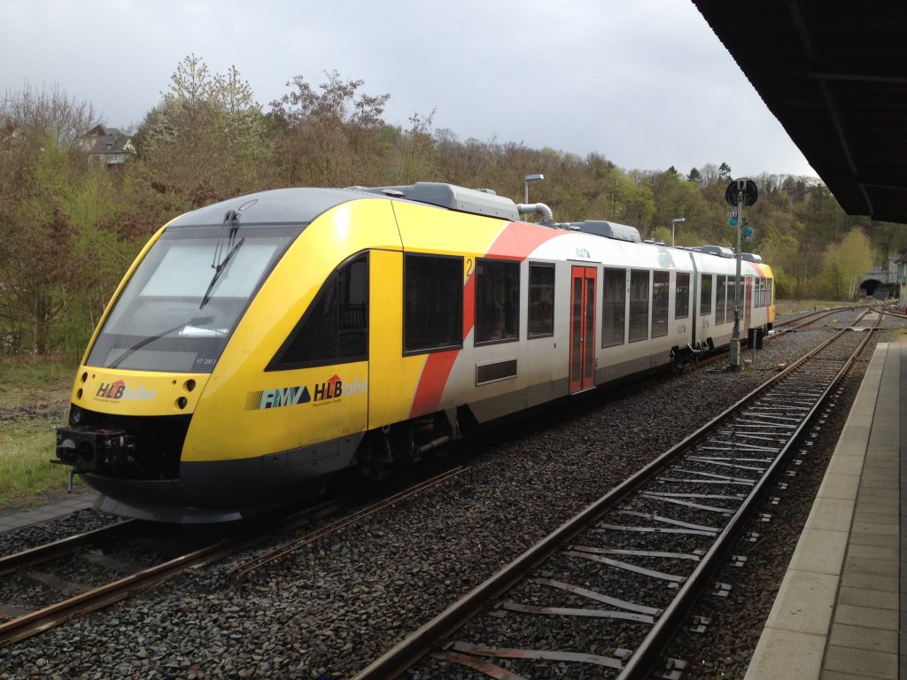 Dieser Lint 41 der Vectus steht am 22.4 in Weilburg abgestellt. Dieser Zug fährt auf der Lahntalbahn im Auftrag der HLB.