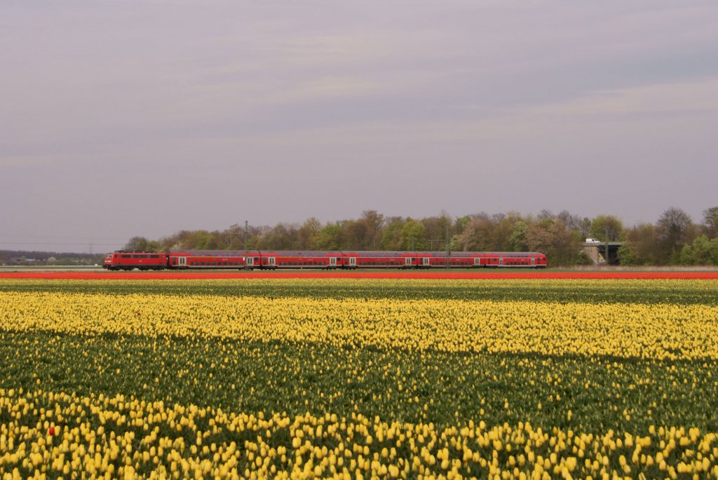 Mit einem ehrenvollen Kranz wurde 145 067-5 mit dem Ambrogio-Zug abgelichtet. Denzlingen den 21.04.2012