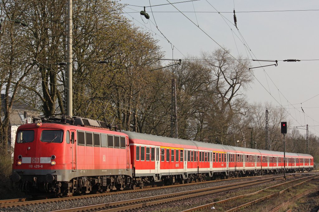 110 429 mit dem RE 10456 von Düsseldorf nach Aachen bei der Durchfahrt durch Düsseldorf-Bilk am 19.04.2012
