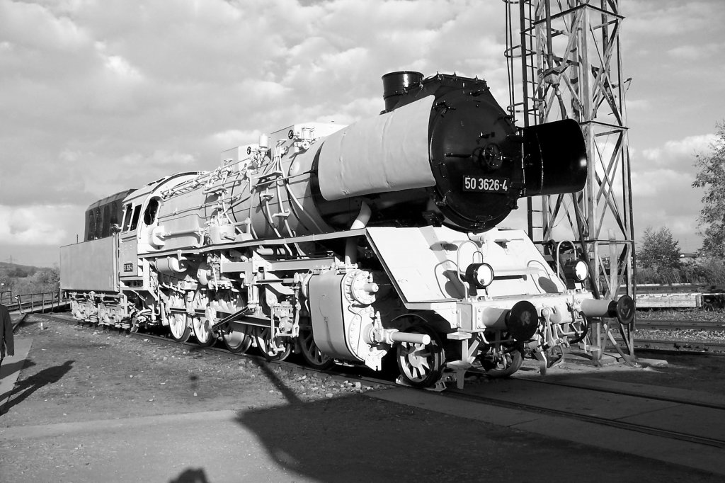 Serie 9600 (Achsfolge 1D), die erste ganz in Japan produzierte Dampflok. Gebaut 1913 bis 1941. Sie trägt noch Nummern aus den 1910er-Jahren (9600 bis 9699, 1-9600 bis 1-9699, 2-9600 usf.), insgesamt 9600 bis 7-9669 (also 770 Loks); dazu 5 für Sachalin, 9 für Taiwan, 6 für Werksbahnen auf Hokkaido und Sachalin. Als einziger japanischer Loktyp wurden 39 weitere in den USA (für Taiwan) gebaut. 261 Loks gingen vor dem Krieg ins Ausland, 6 nach Sachalin und 255 nach China (für Normalspur umgebaut); bis 1980 waren einige davon im Raum Kunming als Meterspurloks noch im Einsatz. In Japan endete der Einsatz im März 1976. Hier steht die 6-9665 in Tateno auf der Südinsel Kyûshû, 15.August 1972.