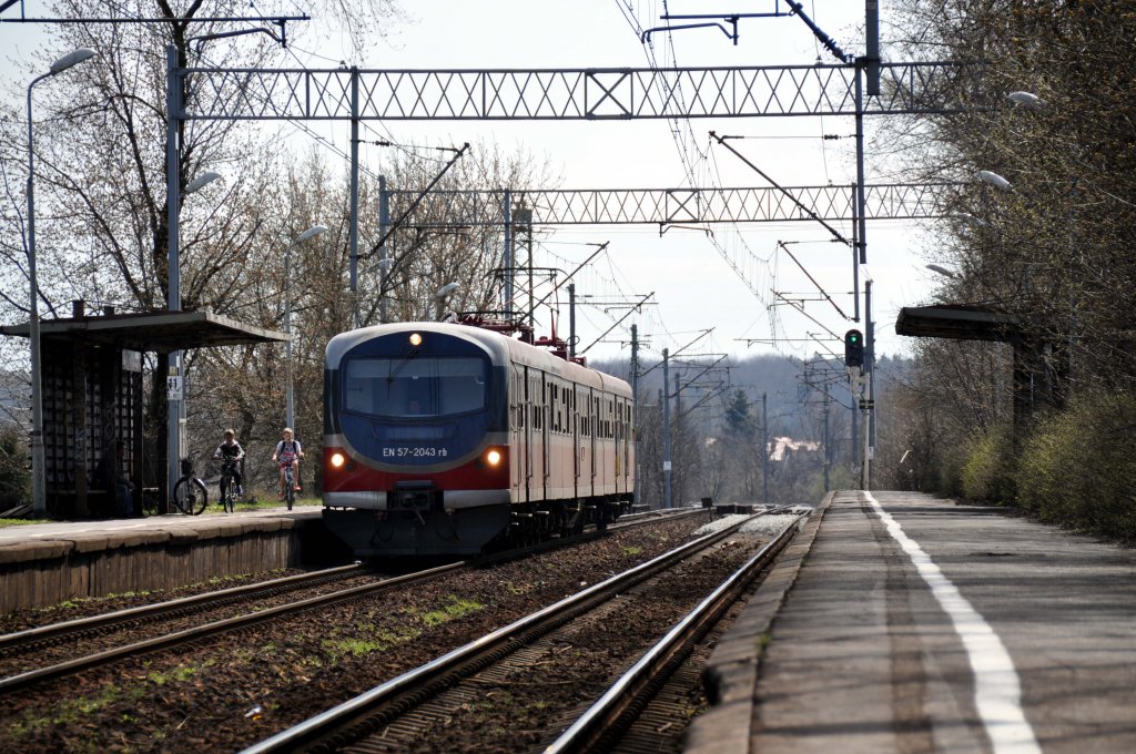 EN57 955 mit einer Regionalbahn nach Tychy-(Miasto) bei Katowice Podlesie (11.04.2012)