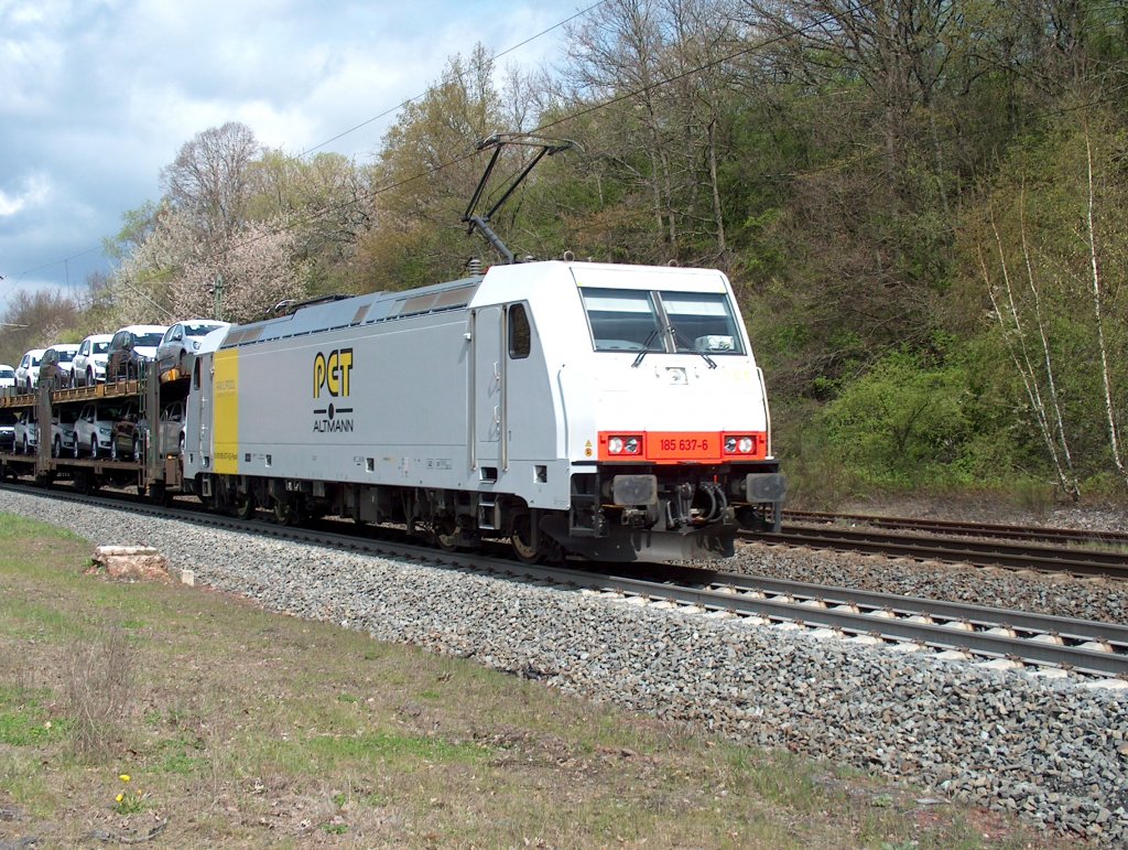 186 343-0 der ECR zieht einen Autozug am 30.04.2012 durch Kaiserslautern