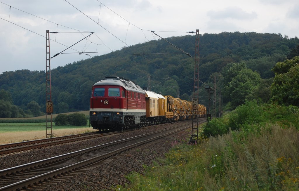 232 550-4 mit einem schweren Bauzug am 07.08.2011 bei Salzderhelden