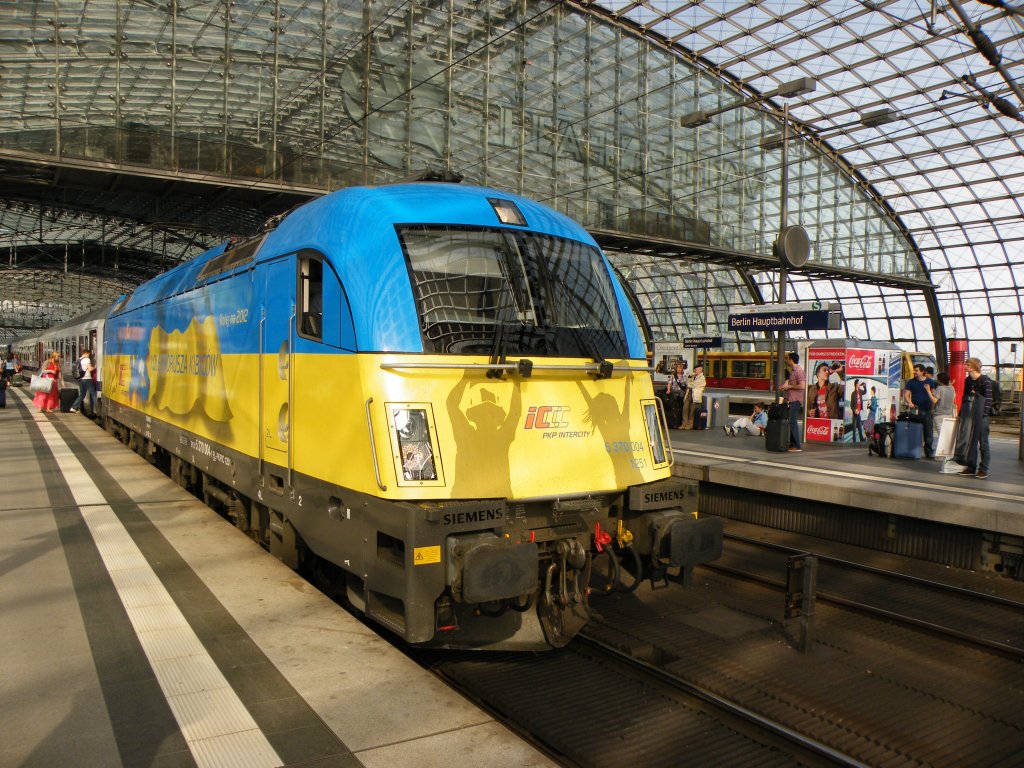 5 370 010 "Poznan" mit dem EC 44 von Warszawa Wschodnia nach Berlin Hbf bei der Einfahrt in den Berliner Hbf. 30.04.2012