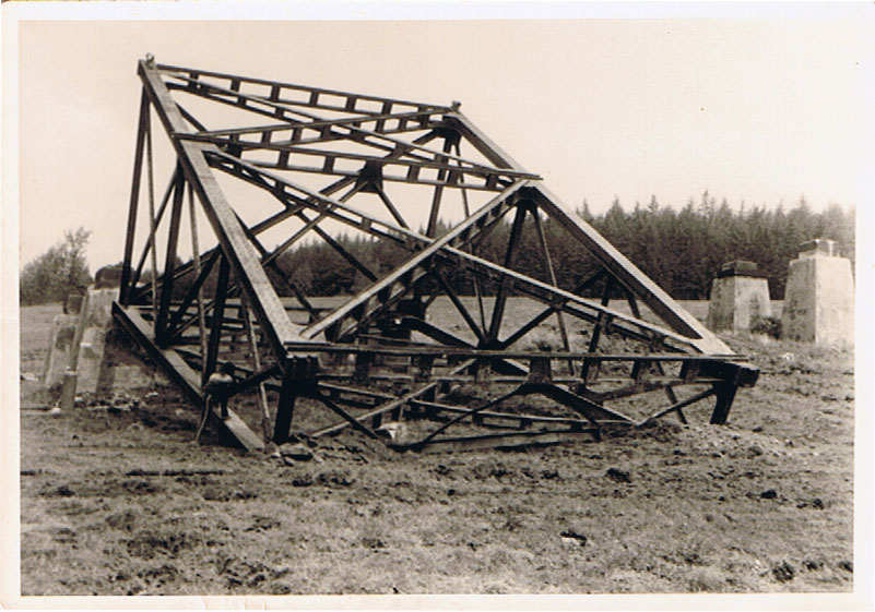 Das Werk ist vollbracht!!! Die Gerüstpfeiler wurden mittels Planierraupe umgezogen. Als einst fünftgrößte Stahlbrücke Sachsens, hatte die sogenannte Göckeritztalbrücke am Ende nur noch Schrottwert. Grünhain 1977.