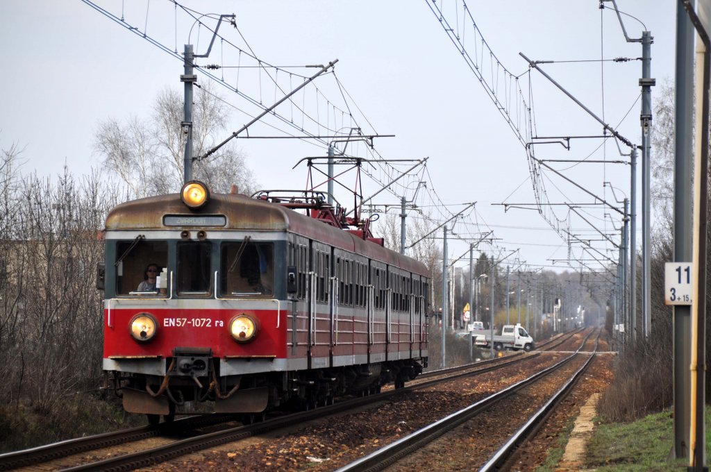 EN57 1072 mit einer Regionalbahn nach Zwardoń bei Katowice Podlesie (11.04.2012)