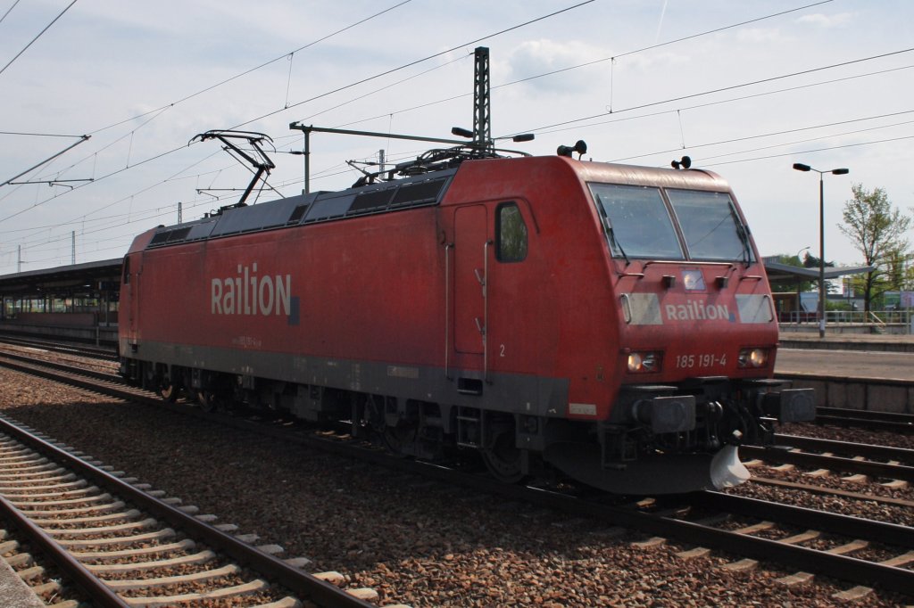 Hier 185 191-4 als Lz in Richtung Wünsdorf-Waldstadt, bei der Durchfahrt am 30.4.2012 durch Berlin Schönefeld Flughafen.