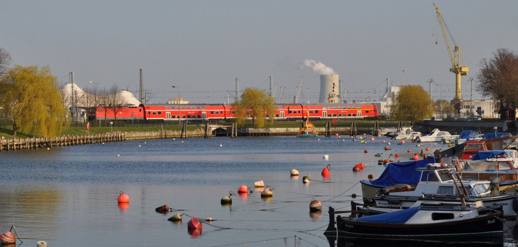Der ICE 1606 auf dem Weg von München Hbf nach Warnemünde am 05.04.2012 bei der Durchfahrt durch Nassenheide.