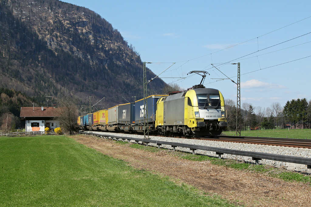TXL 182 512 mit einem KLV Zug am 01.04.2012 bei Niederaudorf im Inntal.