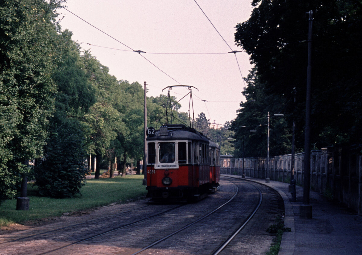 Wien Wiener Stadtwerke-Verkehrsbetriebe (WVB) SL 62 (M 4089 (Lohnerwerke 1929)) XIII, Hietzing, Lainz, Wolkersbergenstraße im Juli 1975. - Scan eines Diapositivs. Kamera: Minolta SRT-101.