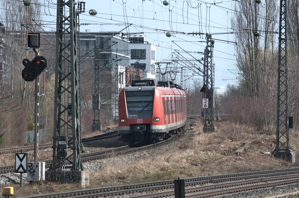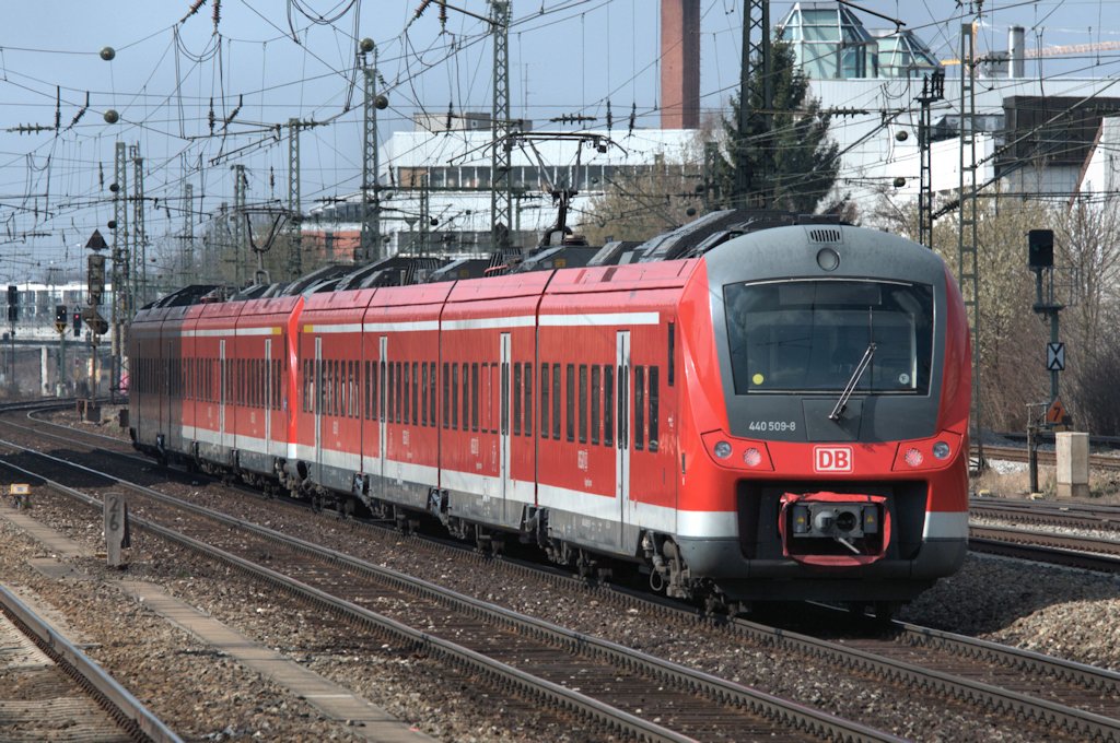 Eine Doppeleinheit 425ziger verlässt gerade den Bahnhof Rheydt-Odenkirchen in Richtung Koblenz.3.4.2012