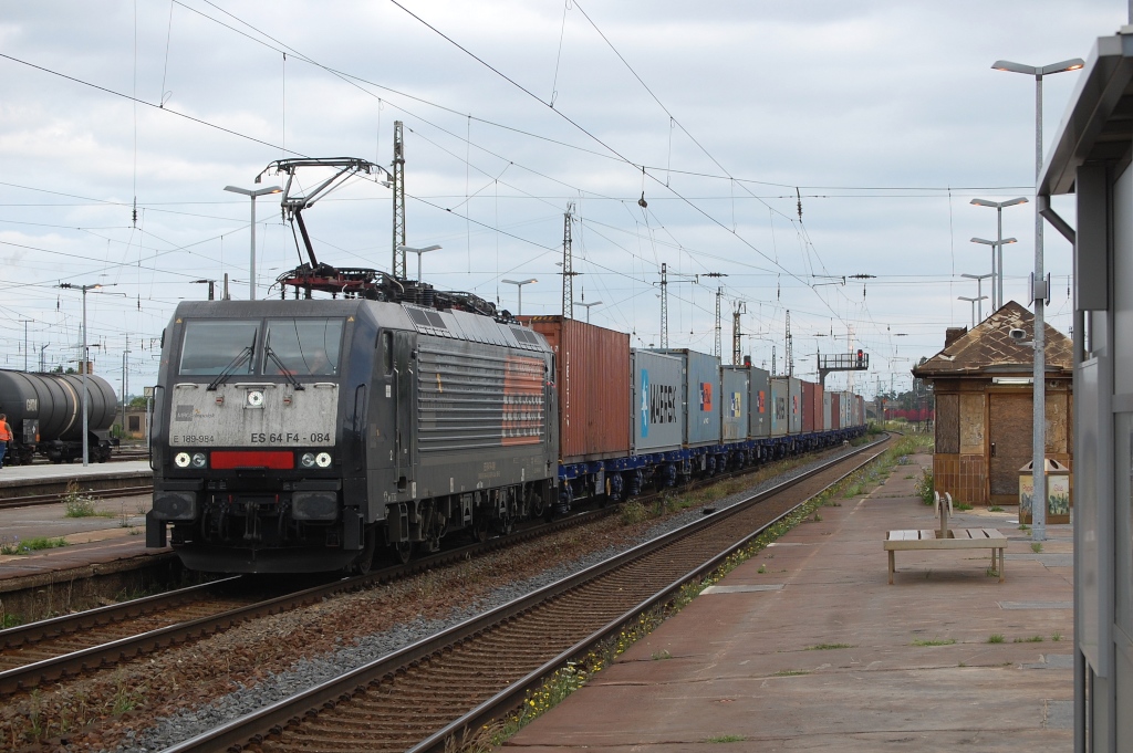 Locon ES 64 F4-084 (E 189-984)am 15.07.2011 mit einem Containerzug durch Großkorbetha