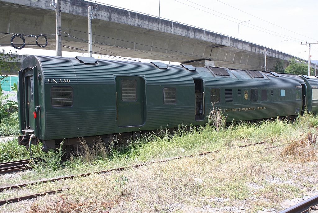 Während der Ruhezeit des Eastern & Oriental Express in Bangkok wird dieser im Gelände des Frachtenbahnhofes Phahon Yothin hinterstellt. E&O Express Generatorwagen GR 336 am 13.Mai 2012 auf dem Gelände des Phahon Yothin Yard.
